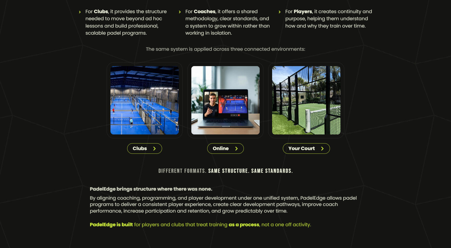 El resultado es una web pensada para crecer junto al proyecto y acompañar a PadelEdge en su expansión internacional.
